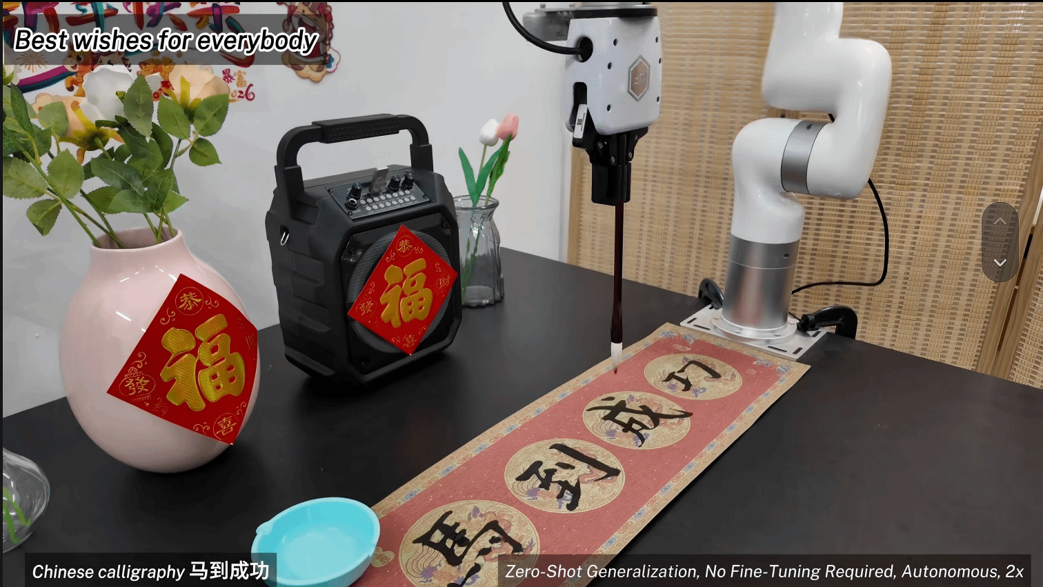 这群年轻人正用本人的体例,从尝试室千家万户,边灯杆上红灯笼高高挂起,贴着对联,这也是目前具身智能范畴的前沿标的目的。